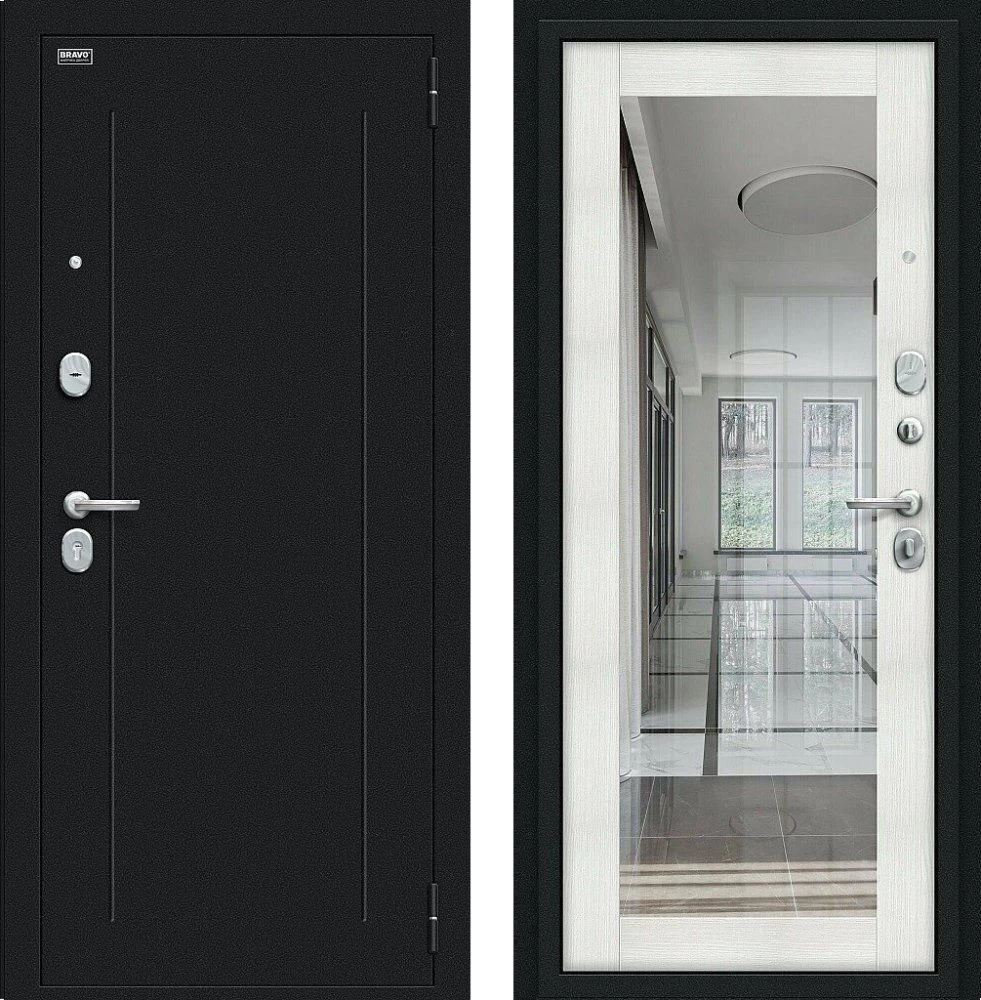 Надежная входная Дверь Браво Флэш Букле черное/Bianco Veralinga премиум класса по цене 35 050 руб. Большая толщина стали защитит от проникновения в ваш дом, квартиру или коттедж. Используется очень качественная фурнитура: замки, цилиндры, ручки, защелки. Покрытие и отделка двери изготовлено под внимательным контролем производителя. Дверь имеет долгий срок службы и гарантию.