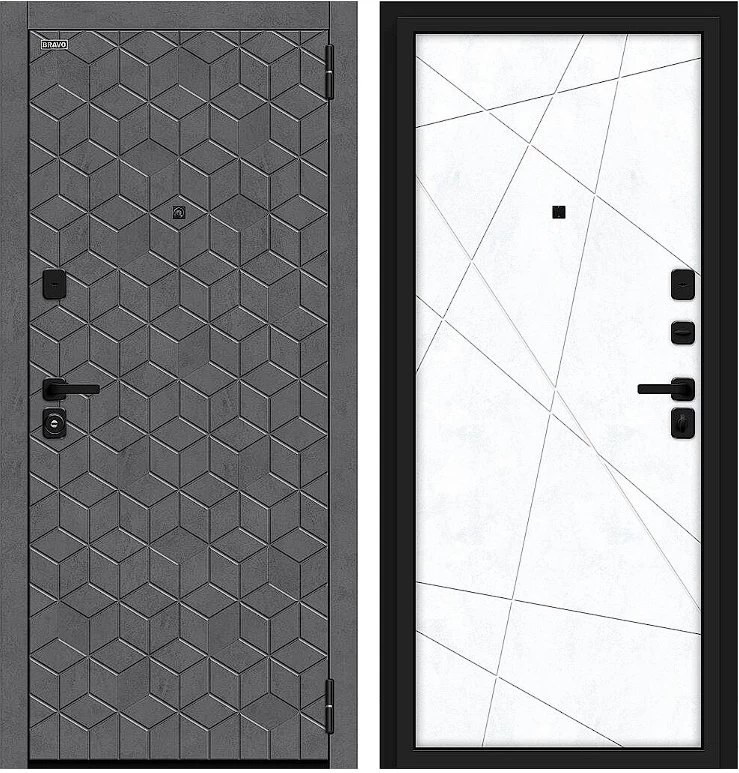 Надежная входная Дверь Браво Кьюб/SBlack Slate Art/Snow Art премиум класса по цене 41 450 руб. Большая толщина стали защитит от проникновения в ваш дом, квартиру или коттедж. Используется очень качественная фурнитура: замки, цилиндры, ручки, защелки. Покрытие и отделка двери изготовлено под внимательным контролем производителя. Дверь имеет долгий срок службы и гарантию.