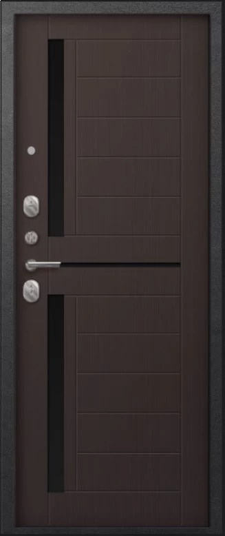 Надежная входная Дверь A-01 черный сатин - лиственница тёмная премиум класса по цене 33 250 руб. Большая толщина стали защитит от проникновения в ваш дом, квартиру или коттедж. Используется очень качественная фурнитура: замки, цилиндры, ручки, защелки. Покрытие и отделка двери изготовлено под внимательным контролем производителя. Дверь имеет долгий срок службы и гарантию.